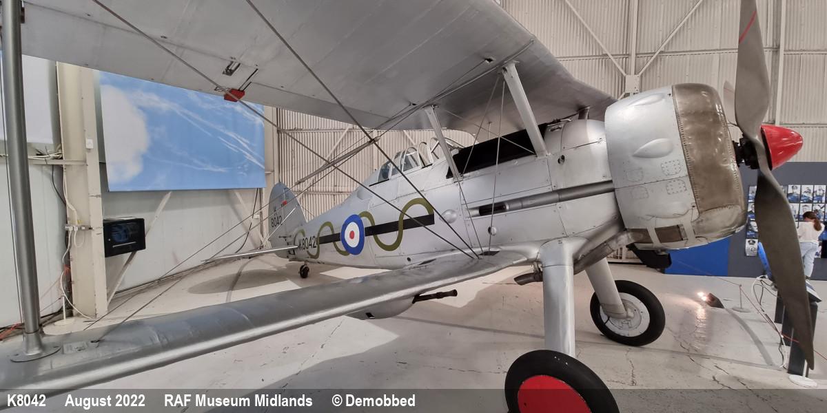 | K8042 | Gloster Gladiator II | Museum, inside | RAF Cosford Museum | Jul 2024 | ||