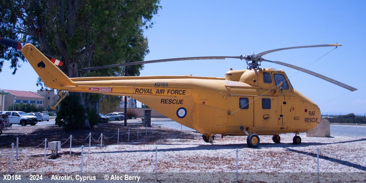 | XD184 | Westland Whirlwind HAR10 | Spade, 84 Sqn marks | Preserved, on base | RAF Akrotiri, Cyprus | May 2024 | |
