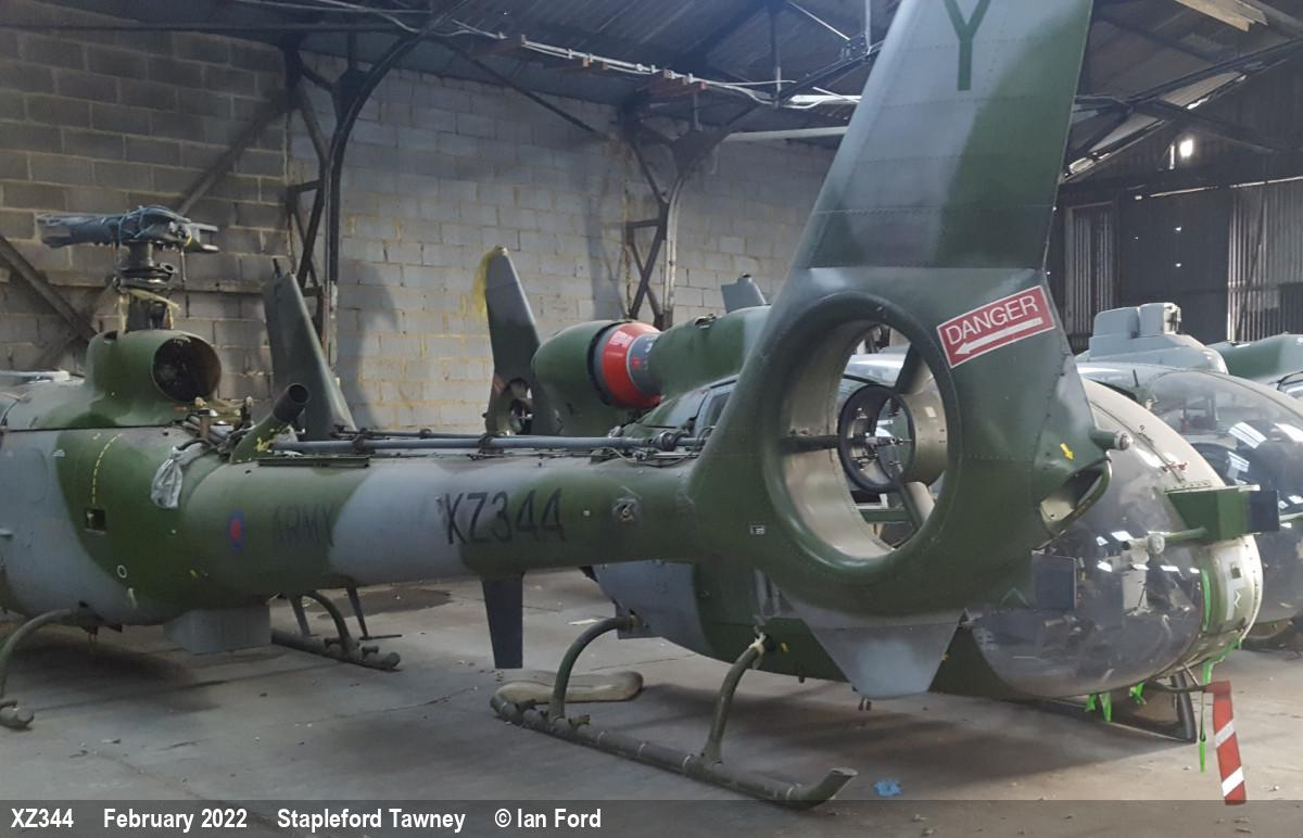 | XZ344 | Aerospatiale Gazelle AH1 | Y | Stored, hangar | Stapleford Tawney | Oct 2022 | |
