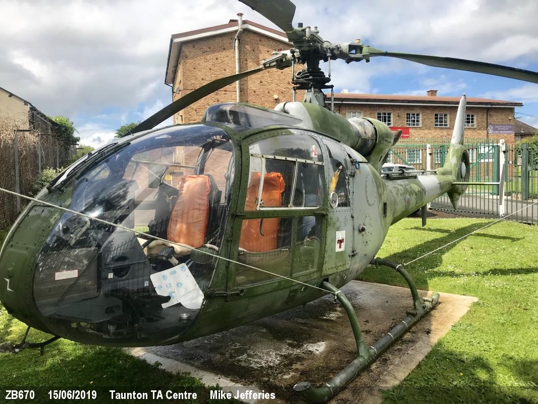 | ZB670 | Aerospatiale Gazelle AH1 | Preserved, gate guard | Taunton - TA | Oct 2023 | ||