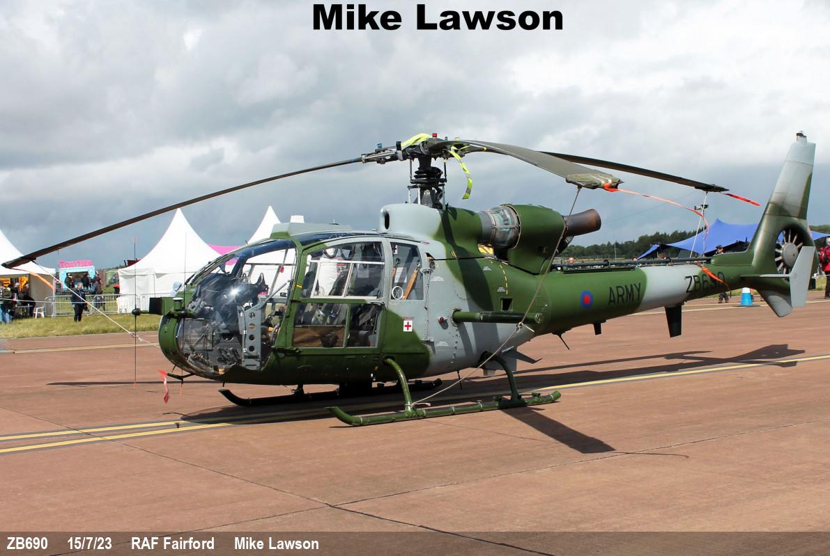 | ZB665 | Aerospatiale Gazelle AH1 | Stored | Fleetlands | Oct 2023 | ||