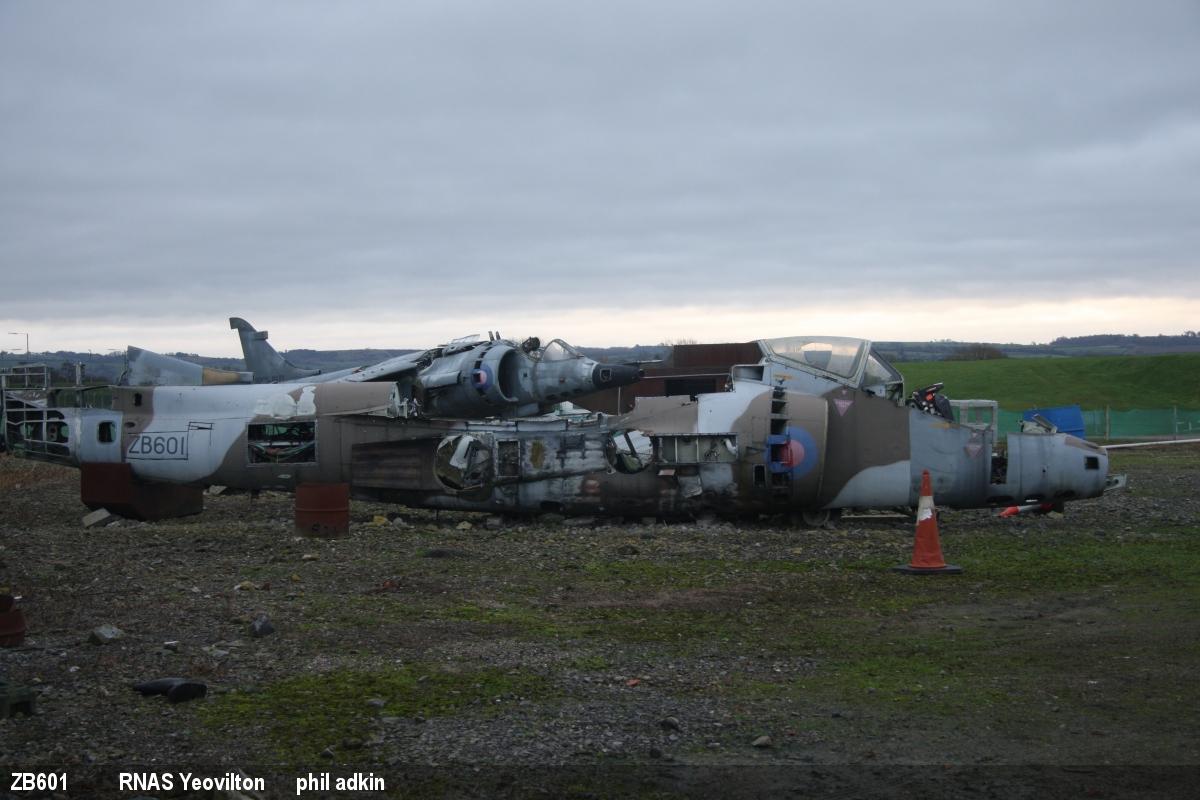 | ZB601 | HS Harrier T4N | (N) | Stored, outside - dismantled | Thorpe Wood, Selby | Feb 2023 | |