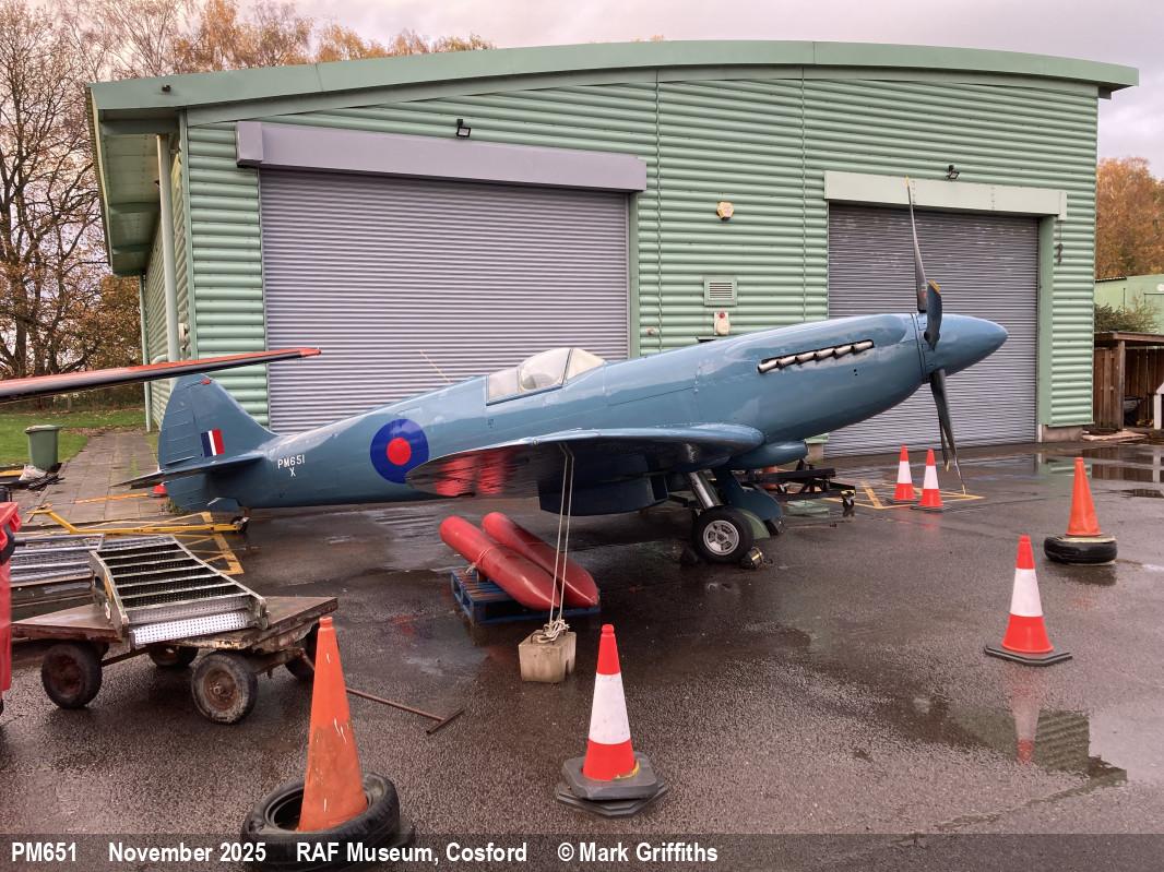 | PM651 | Supermarine Spitfire PRXIX | X, 7758M | Beetham Centre | RAF Cosford Museum | Nov 2025 | |