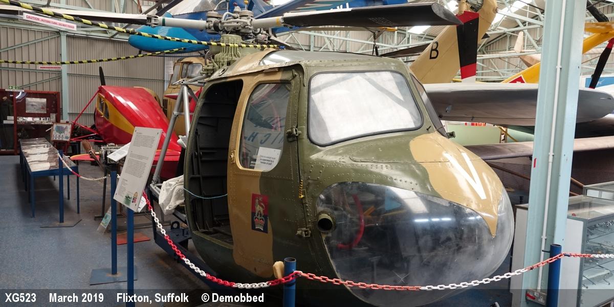 | XG523 | Bristol Sycamore HR14 | Cockpit, V | Museum, inside | Flixton | May 2024 | |
