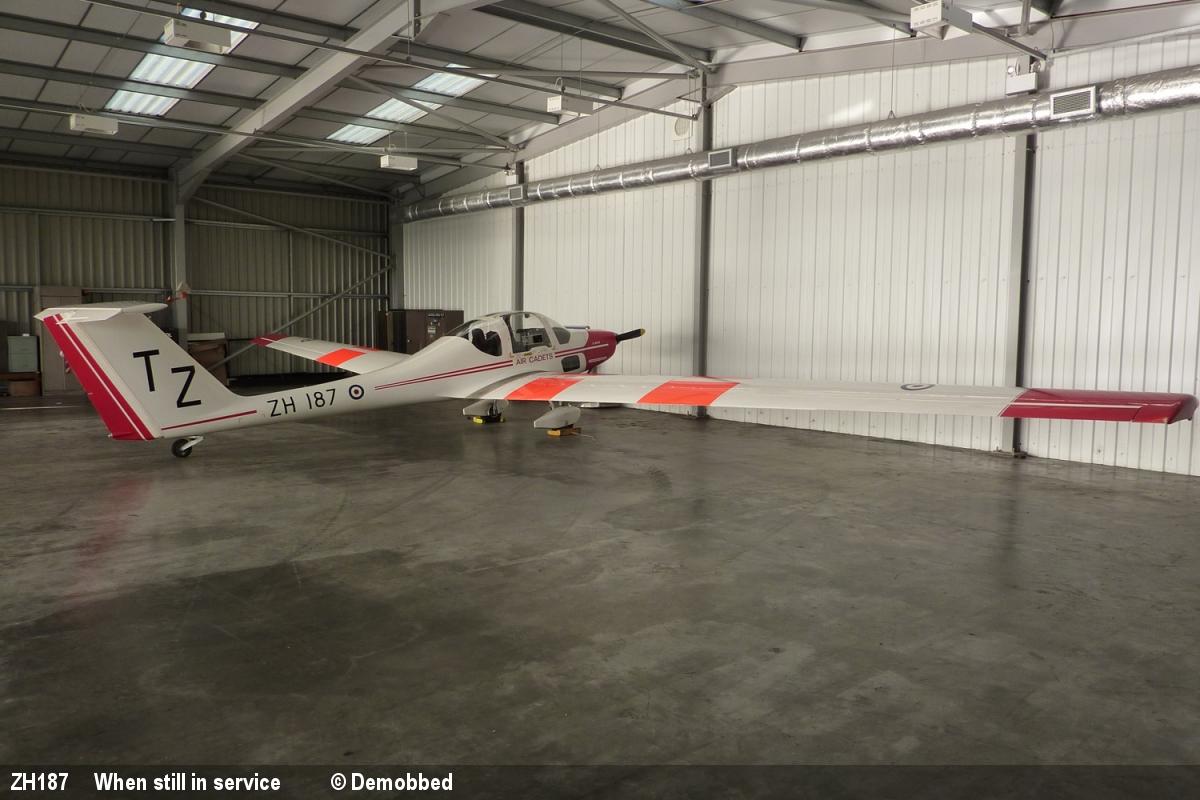 | ZH187 | Grob Vigilant T1 | TZ, NOT at Wing Farm | Stored, offsite | Wiltshire area | Feb 2024 | |