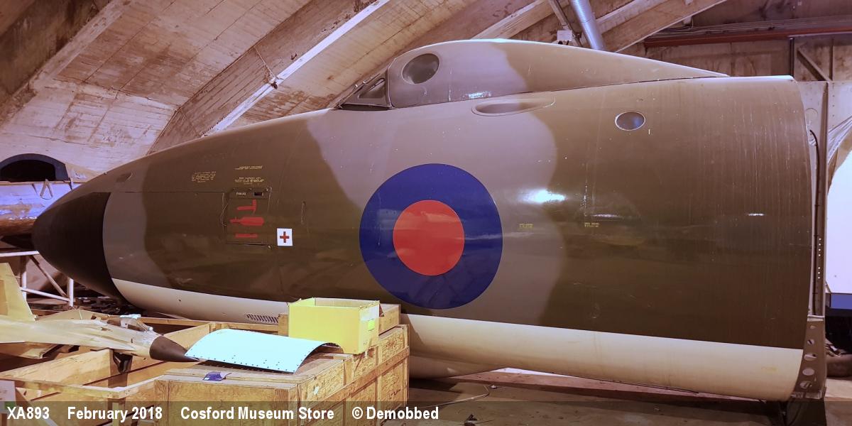 XA893 | Avro Vulcan B1 | (N) | Museum, stored | RAF Cosford Museum Store | Feb 2018 | ![]() |