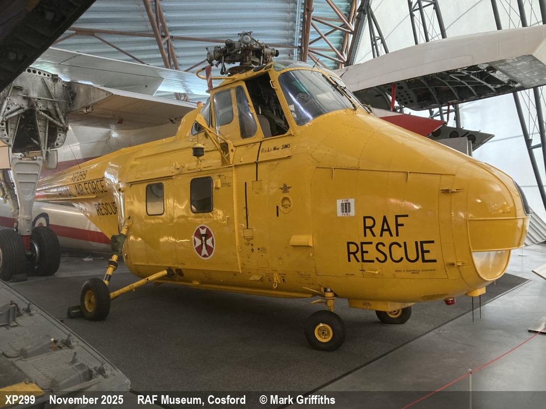 | XP299 | Westland Whirlwind HAR10 | 22 Sqn marks | Museum, inside | RAF Cosford Museum | Nov 2025 | |