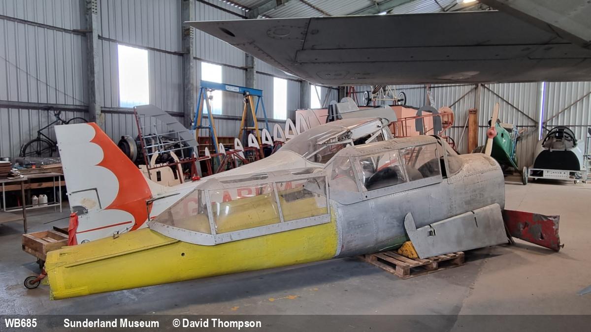 | WB685 | DHC Chipmunk T10 | (Rear fuselage from WP969) | Museum, stored - container | Sunderland Museum | Nov 2023 | |