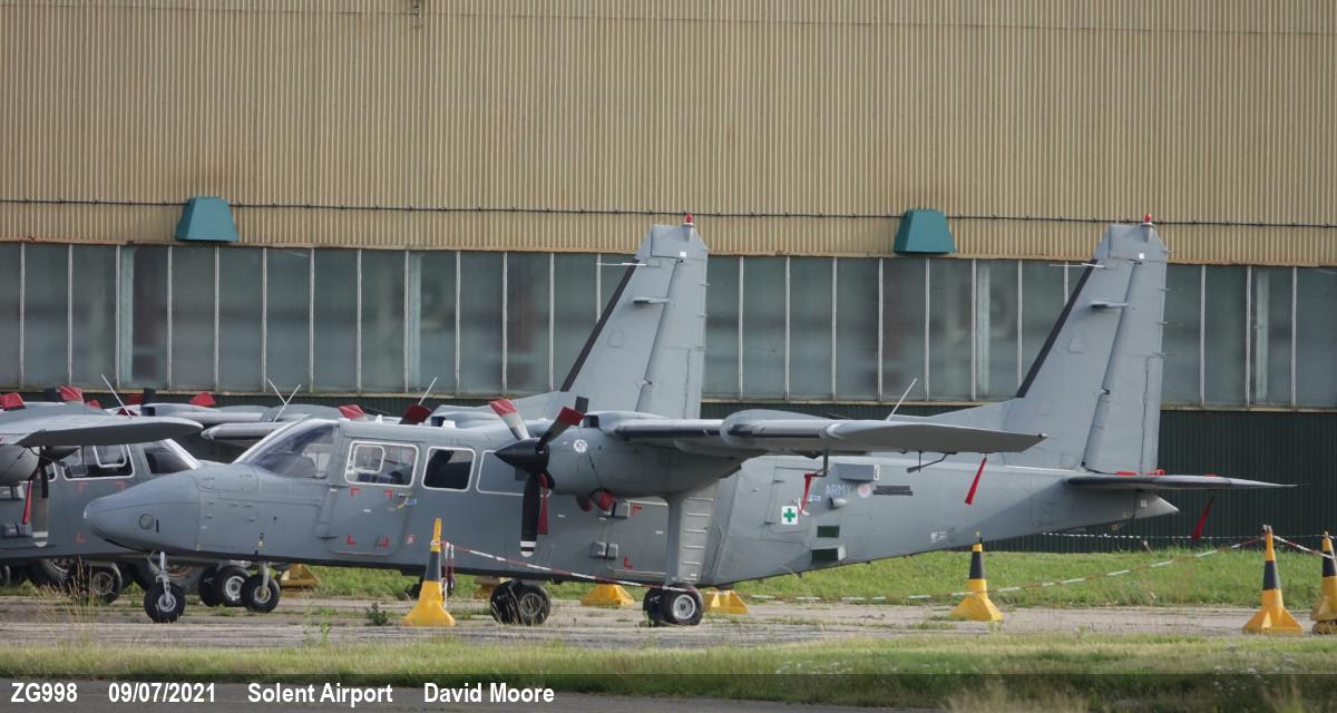 | ZG998 | BN Defender R2 | 8, G-BWPX | Stored | Lee-on-Solent, Solent Airport - Britten Norman | Jul 2025 | |