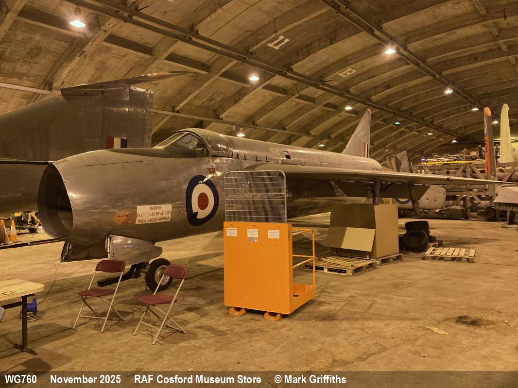 | WG760 | EE P.1 A | Museum, stored | RAF Cosford Museum Store | Nov 2025 | ||