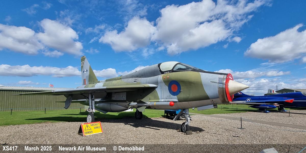 | XS417 | EE Lightning T5 | Z, 56 Sqn marks | Museum, outside | Newark - Museum | Dec 2025 | |
