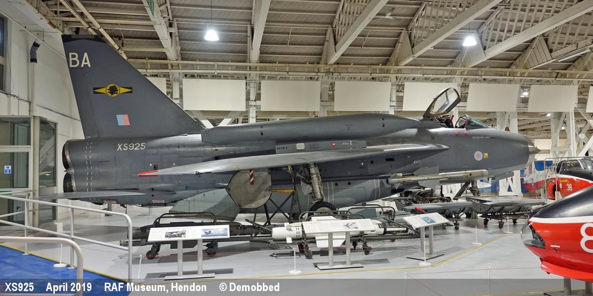| XS925 | EE Lightning F6 | BA, 11 Sqn marks | Museum, inside | Hendon, Barnet | Oct 2025 | |