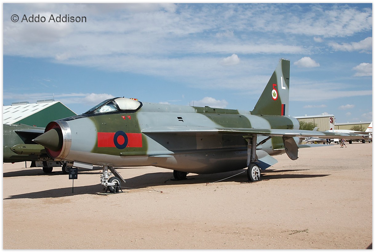 | ZF593 | EE Lightning F53 | L, 5 Sqn marks | Museum, outside | Tucson - Pima Museum | Oct 2025 | |