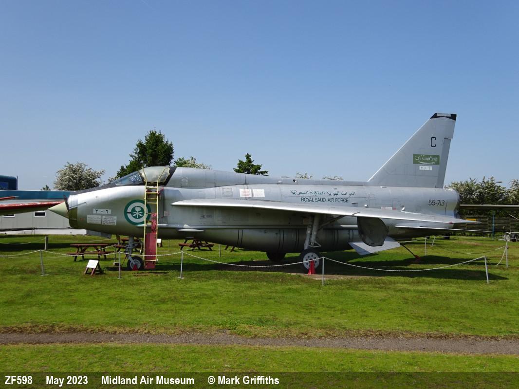 | ZF598 | EE Lightning T55 | 55-713, C, 206 | Museum, outside | Baginton - Midland Air Museum | Aug 2022 | |