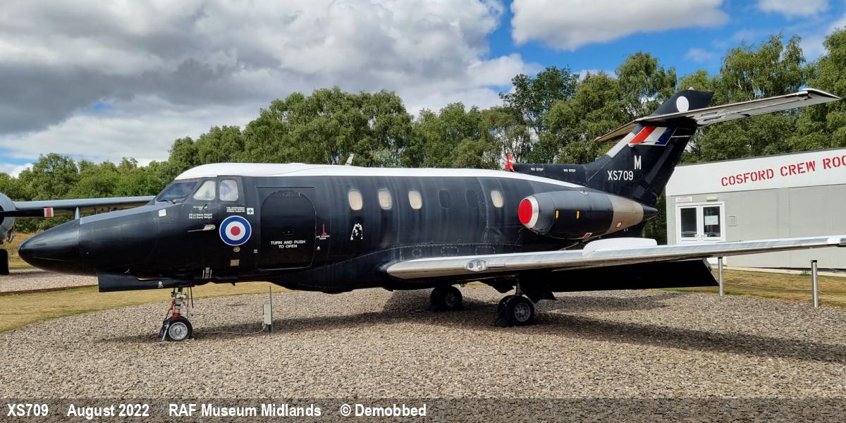 | XS709 | HS Dominie T1 | M, 55 Sqn marks | Museum, outside | RAF Cosford Museum | Jul 2024 | |