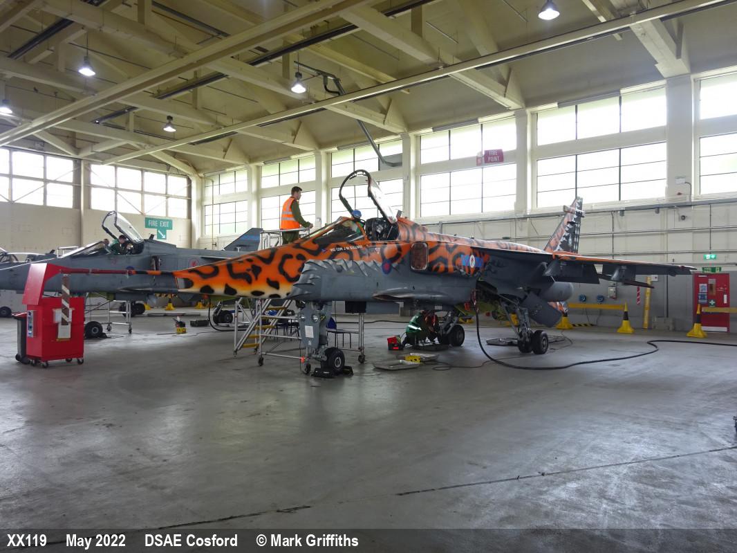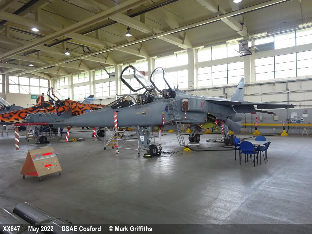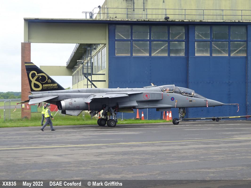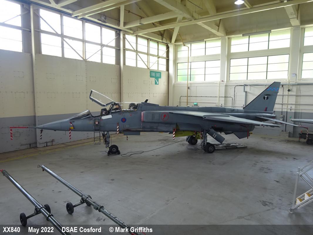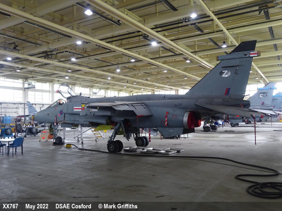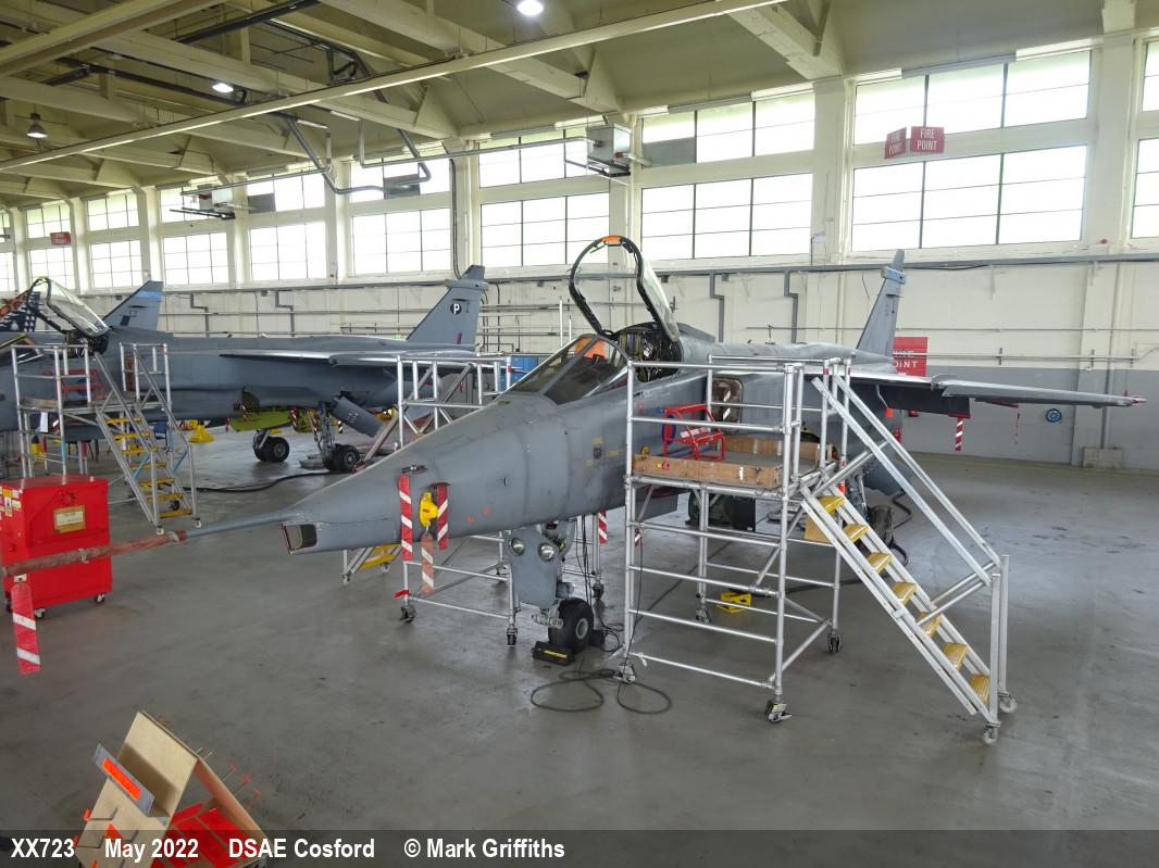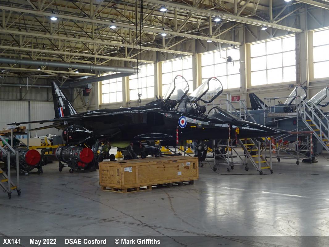 | XZ377 | SEPECAT Jaguar GR3A | P, 6 Sqn marks | DCTT, hangar | RAF Cosford DCTT | May 2022 | |