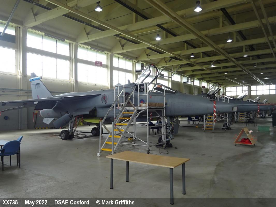 | XX738 | SEPECAT Jaguar GR3A | ED, 6 Sqn marks | DCTT, hangar | RAF Cosford DCTT | Jun 2025 | |