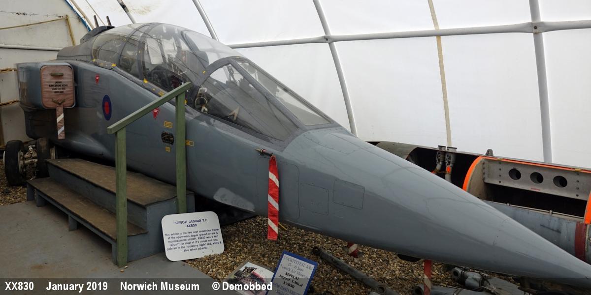 | XX830 | SEPECAT Jaguar T2A | Nose | Museum, inside | Norwich - Museum | Jul 2023 | |