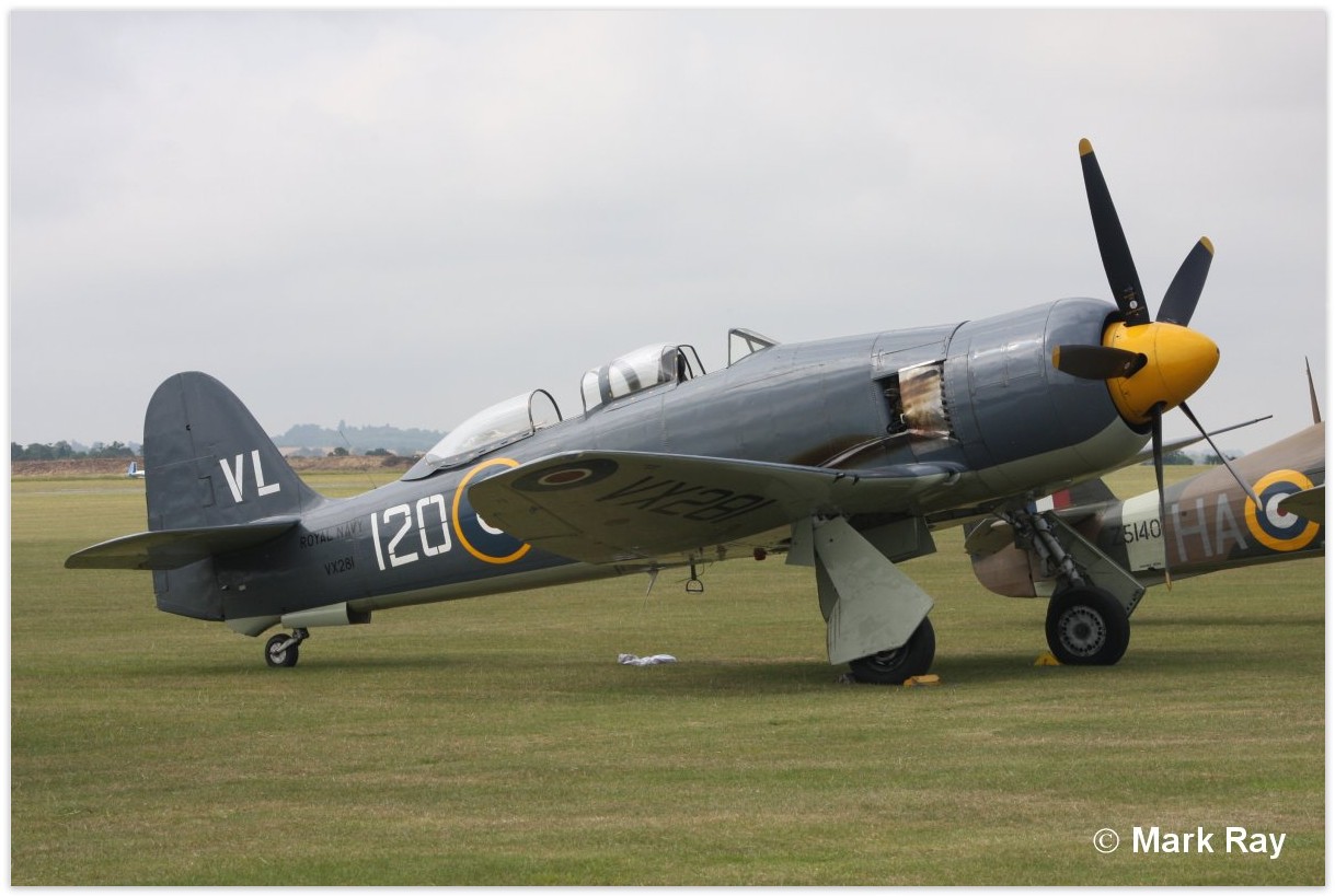 | VX281 | Hawker Sea Fury T20S | VL-120, G-BCOW | Private | Duxford | Nov 2021 | |