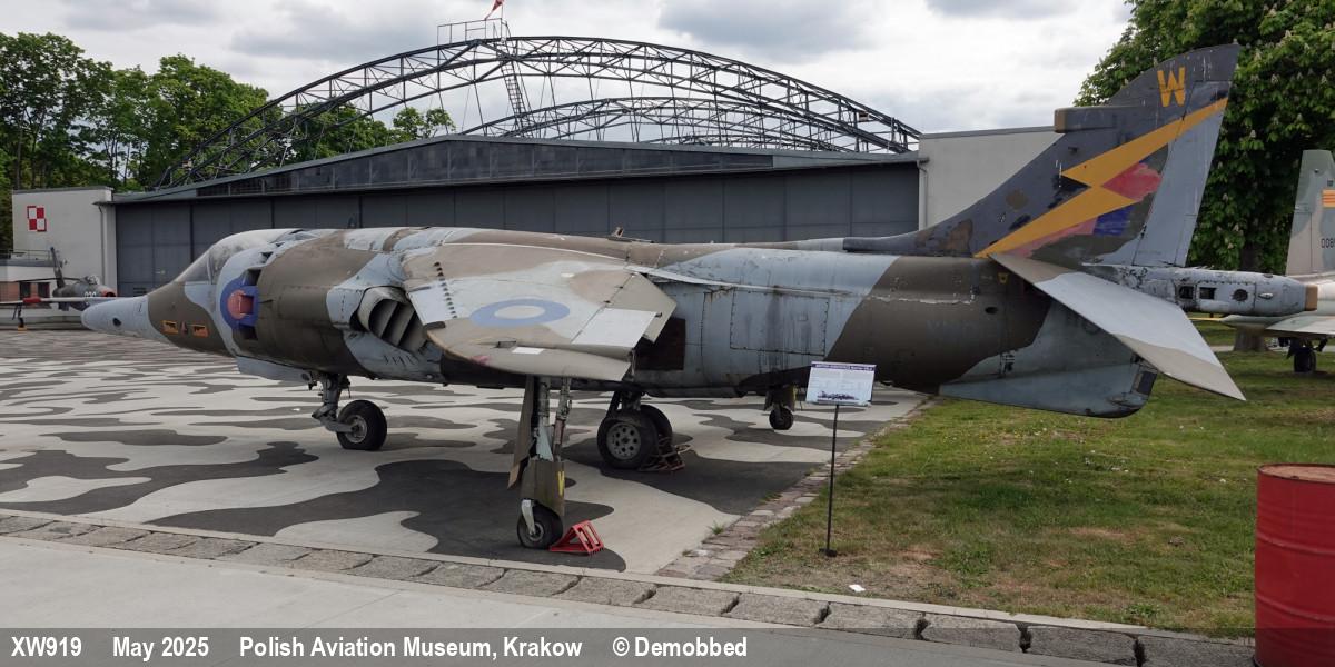 | XW919 | HS Harrier GR3 | W, 4 Sqn special marks | Museum, outside | Krakow - Museum, Poland | May 2025 | |