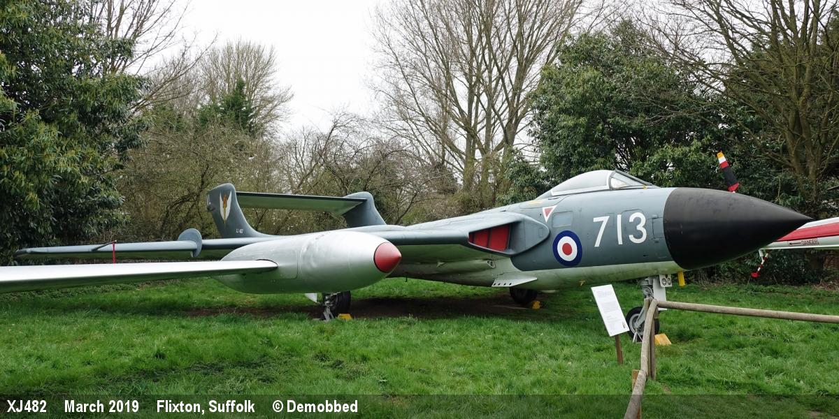 | XJ482 | DH Sea Vixen FAW1 | VL-713, 766 NAS marks | Museum, outside | Flixton | May 2024 | |