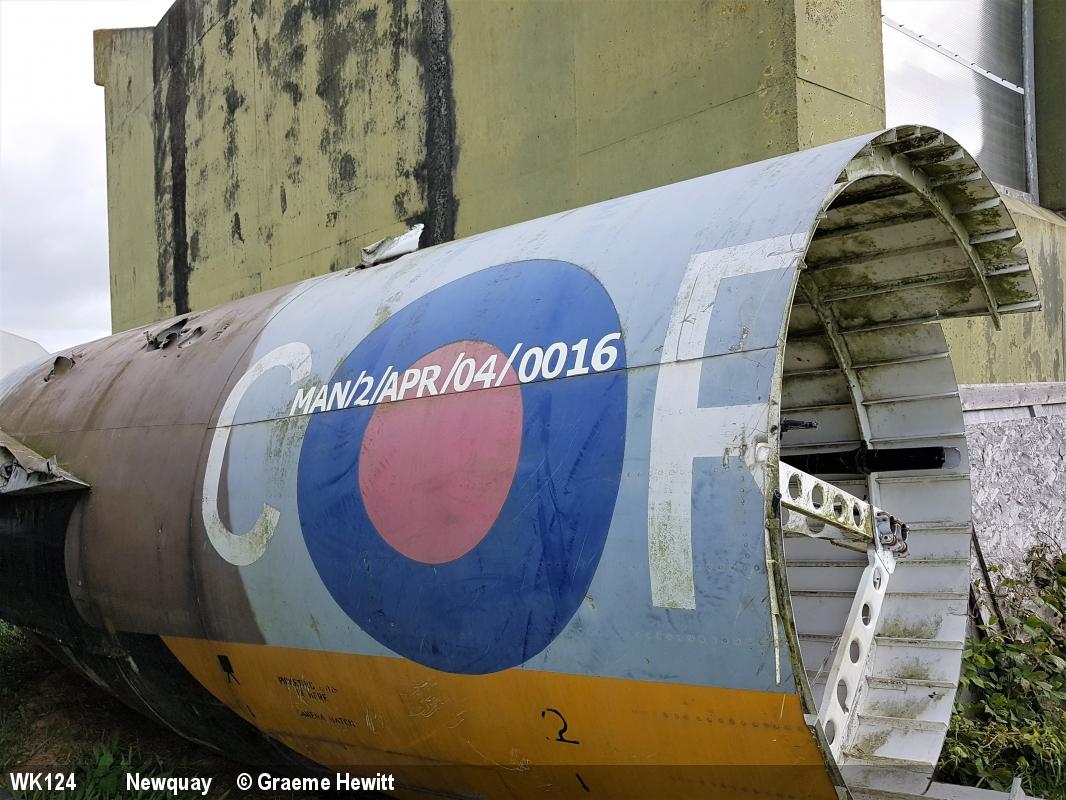 | WK124 | EE Canberra TT18 | Nose only, large remains dumped at Newquay heritage centre | Museum, inside | Stoneykirk, Dumfries and Galloway | Aug 2024 | |