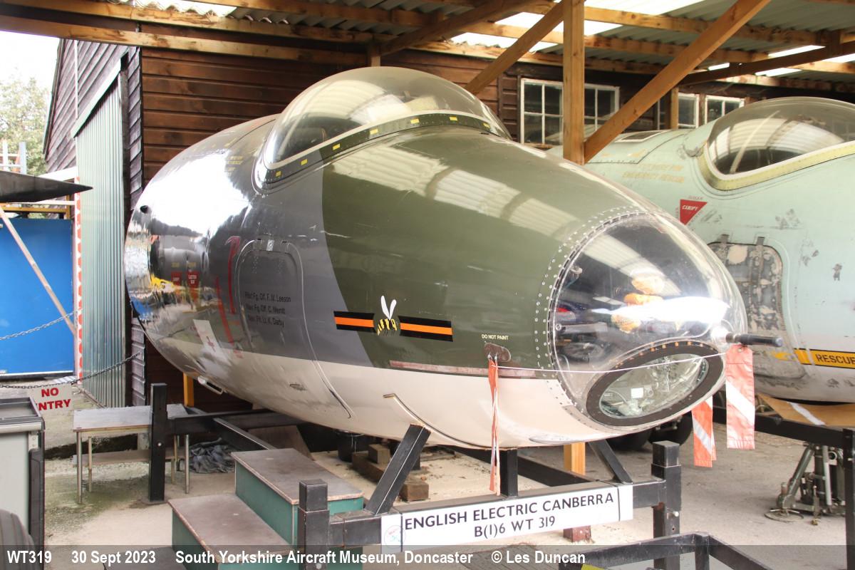 | WT319 | EE Canberra B(I)6 | Nose, 213 Sqn marks | Museum, open-shed | Doncaster - Museum | Feb 2025 | |