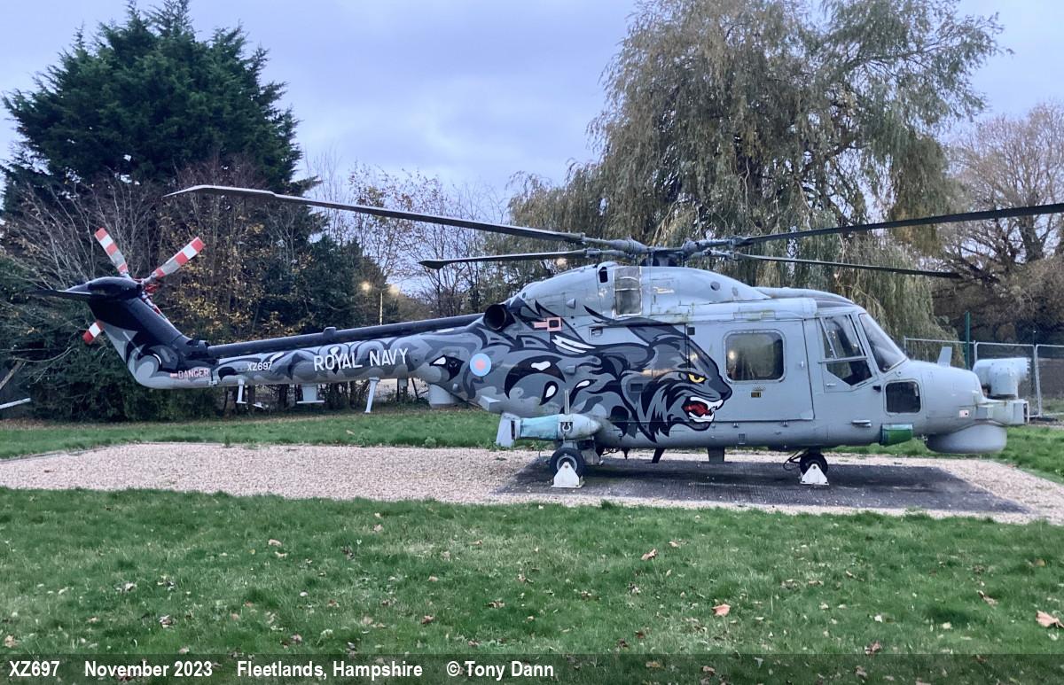 | XZ697 | Westland Lynx HMA8SRU | Special marks | Preserved, on base | Fleetlands | Nov 2023 | |