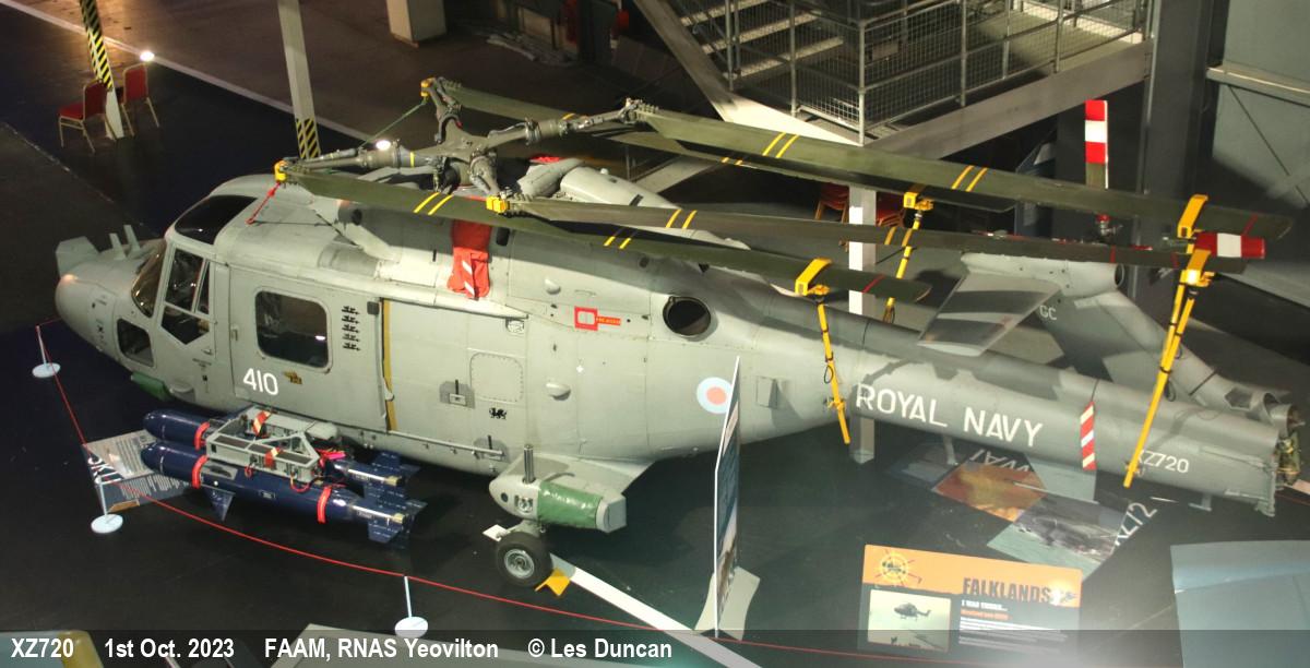 | XZ720 | Westland Lynx HAS3GMS | Wears 'GC-410' | Museum - Hall 4 | Yeovilton - Museum | Oct 2023 | |