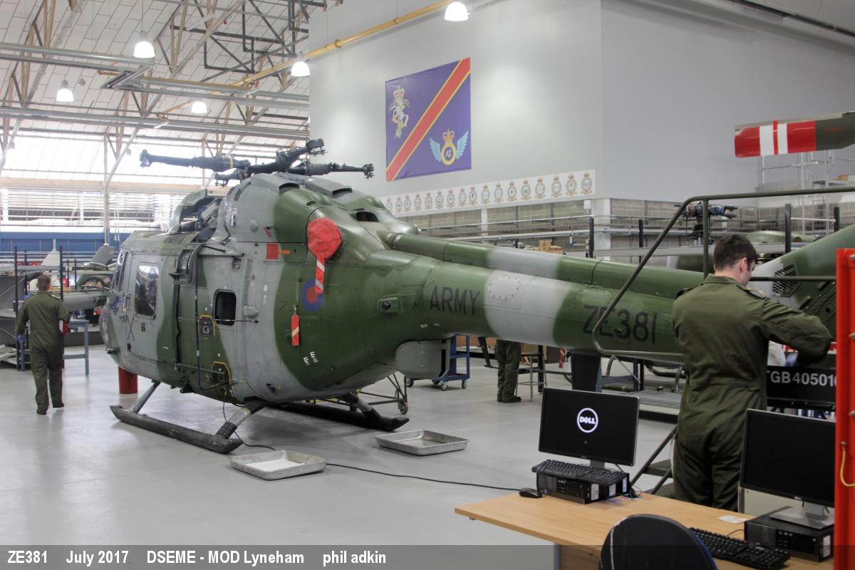 | ZE381 | Westland Lynx AH7 | X | DCTT, main hangar | MoD Lyneham | Jul 2017 | |