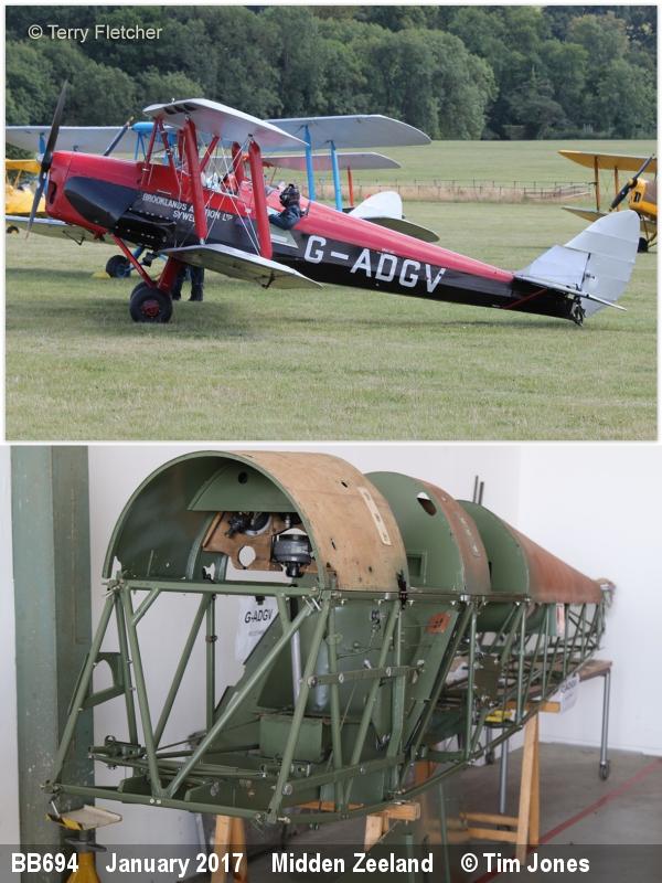 | BB694 | DH Tiger Moth II | G-ADGV | Private | Midden Zeeland, Netherlands | Jan 2017 | |