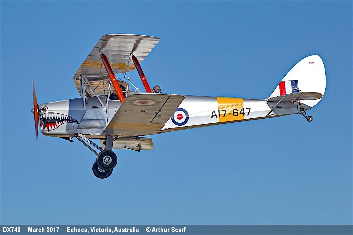 | DX740 | DH Tiger Moth | VH-BGR, A17-647 | Private | Luskintyre, NSW, Australia | Mar 2019 | |