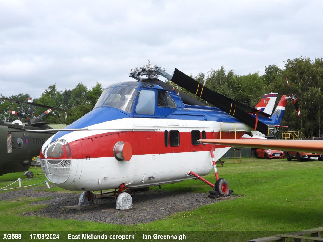 | XG588 | Westland Whirlwind HAR3 | 22 Sqn marks | Museum, outside | East Midlands Aeropark | Aug 2025 | |