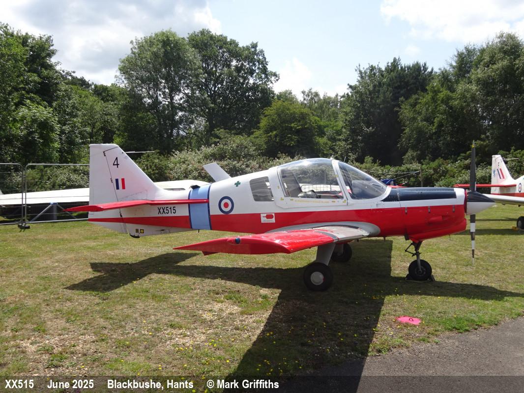 | XX515 | SA Bulldog T1 | 4, G-CBBC, RAFC marks | Private | Blackbushe | Jun 2025 | |