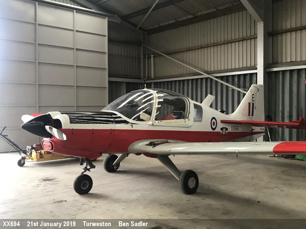 | XX694 | SA Bulldog T1 | E, G-CBBS, EMUAS marks | Private | Cuddesdon | Aug 2019 | |