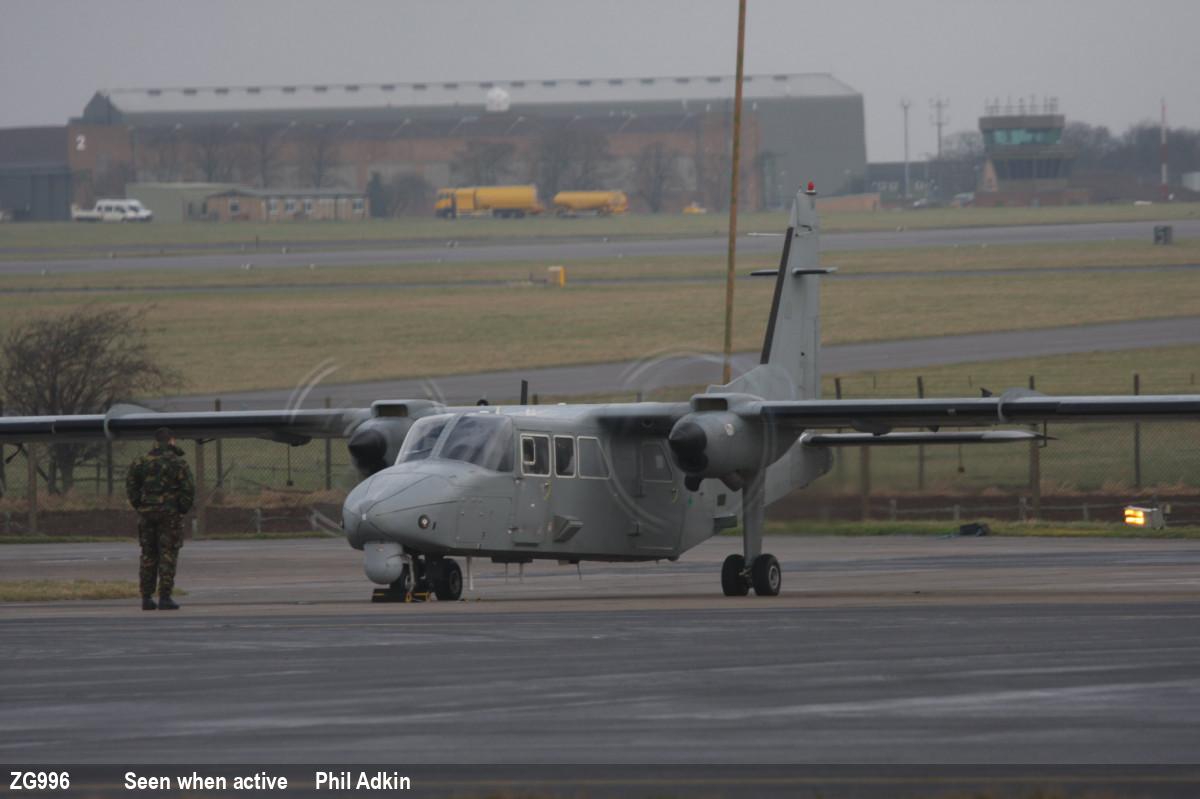 | ZG996 | BN Defender R2 | 6, G-BWPR | Stored | Lee-on-Solent, Solent Airport - Britten Norman | Jul 2025 | |