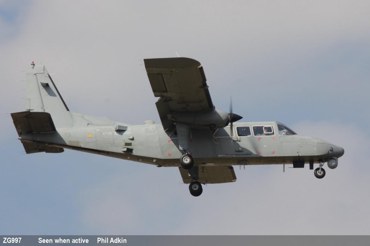 | ZG997 | BN Defender R2 | 7, G-BWPV | Stored | Lee-on-Solent, Solent Airport - Britten Norman | Nov 2022 | |