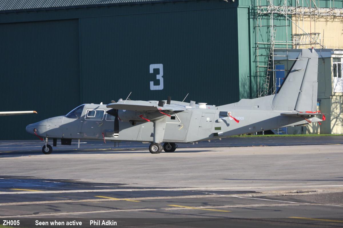 | ZH005 | BN Defender R2 | 05, G-CGVB | Stored | Lee-on-Solent, Solent Airport - Britten Norman | Jul 2025 |