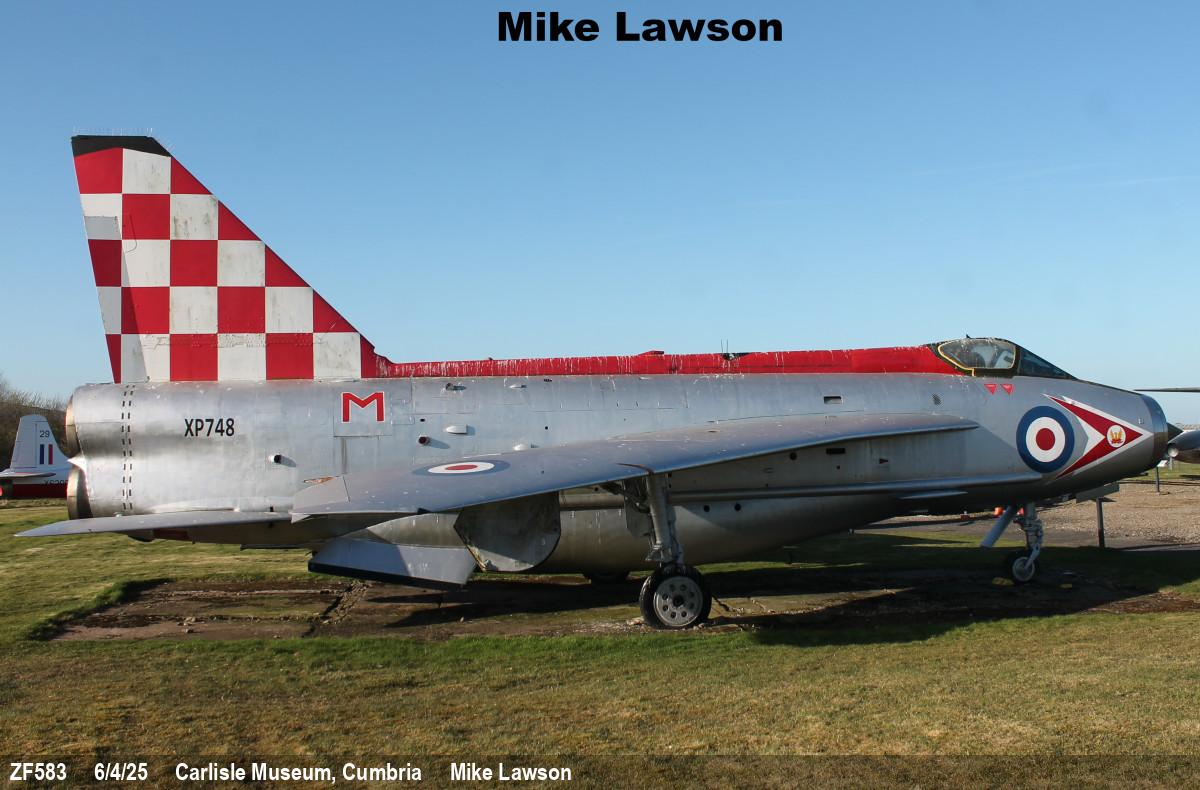 | ZF583 | EE Lightning F53 | M, wears 'XP748', 56 Sqn marks | Museum, outside | Carlisle Museum | Apr 2025 | |