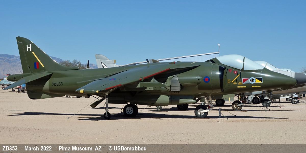 | ZD353 | BAe Harrier GR5 | H, 233 OCU marks | Museum, outside | Tucson - Pima Museum | Oct 2025 | |