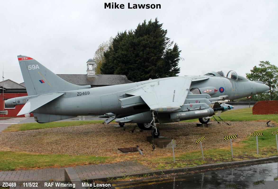 | ZD469 | BAe Harrier GR7A | 59A, 1 Sqn marks | Preserved, gate guard | RAF Wittering | Nov 2025 | |