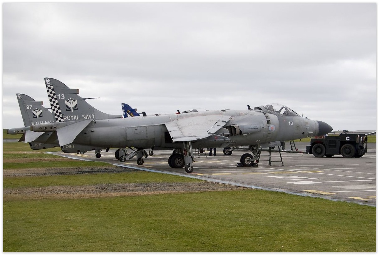 | ZD578 | BAe Sea Harrier F/A2 | 000, 122, 800/801 NAS marks | Preserved, gate guard | RNAS Yeovilton | Jul 2024 | |