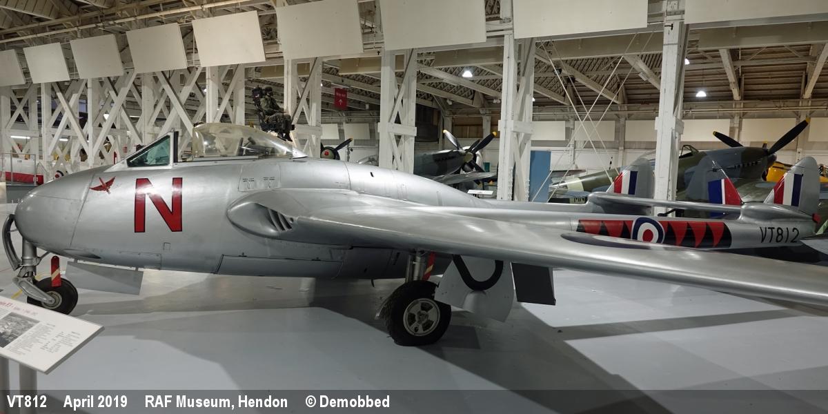 | VT812 | DH Vampire F3 | N, 601 Sqn marks | Museum, inside | Hendon, Barnet | Oct 2025 | |