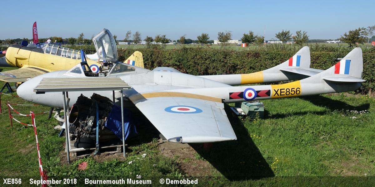 | XE856 | DH Vampire T11 | V | Museum, outside | Bournemouth Museum | Aug 2023 | |